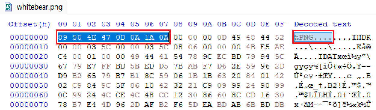 * PNG 시그니처 값(Hexa)