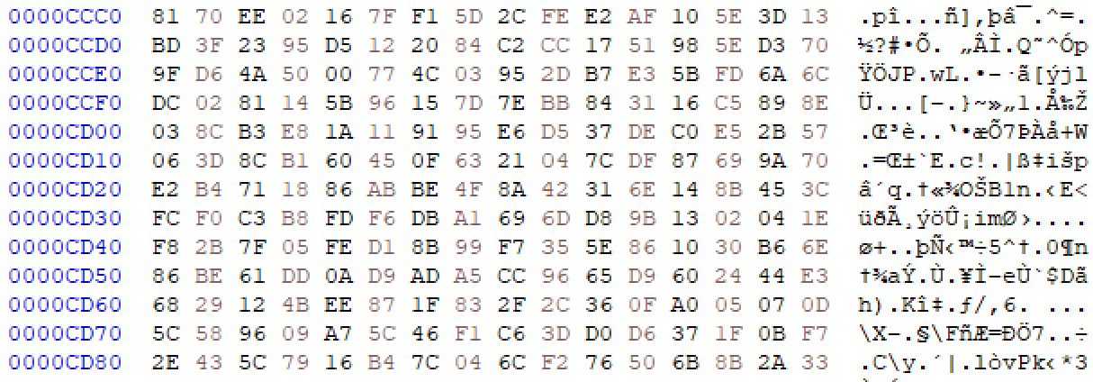 맨 처음에 시도해서 적었던 헤더, 중간 값, 푸터 값을 HXD로 열어 확인해 보았을 때 크게 단서가 될만한걸 찾지 못했다.