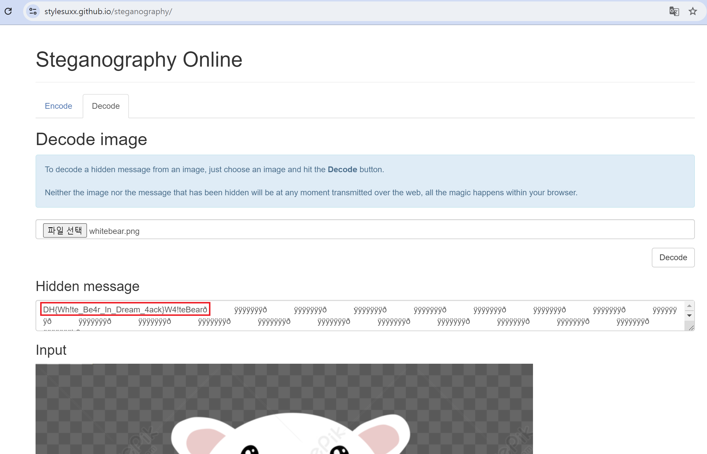 문제를 다운받았을 땐 아래와 같이 하얀 곰이 그려져 있는 .png 파일을 볼 수 있다.